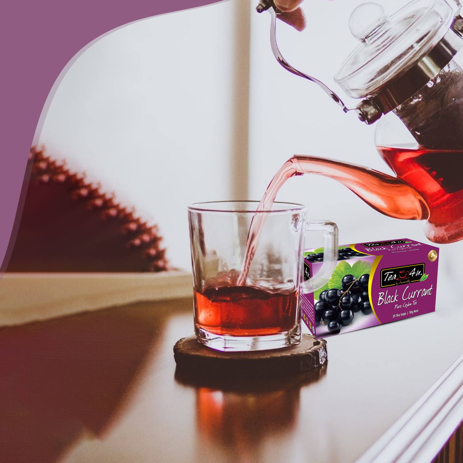 Discover the delicious blend of TEA4U Black Currant Black Tea. Each package contains 25 tea bags, each carefully enclosed in individual foil envelopes to maintain freshness and flavor. Our fragrance-packed black currants are blended with the bold richness of Ceylon black tea, creating a delightful harmony of taste. Along with its naturally sweet and refreshing flavor, our black currant tea is packed with antioxidants, offering numerous health benefits. Whether enjoyed hot or cold, this black flavored tea delivers fruity goodness with every sip. Indulge in the goodness of TEA4U Black Currant Black Tea today.